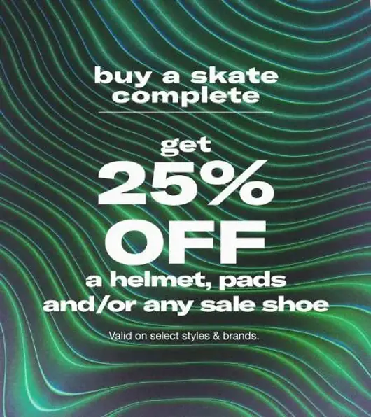 Buy a Skate Complete and Get 25% off a Helmet, Pads and/or Any Sale Shoe