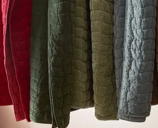 Velvety-soft, handcrafted from 100% cotton chenille, and available in 12 beautiful hues. Stop by and shop for a cozy cloud quilt in store today!