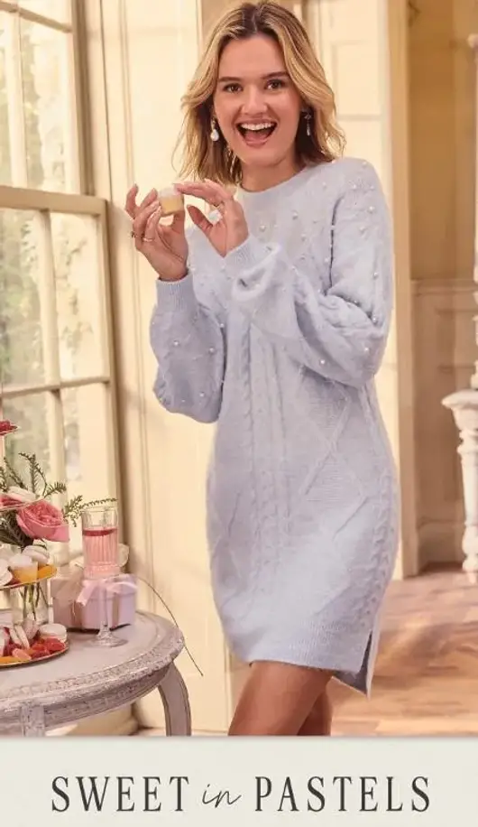Soft colors and even softer knits make your cozy season extra dreamy. Stop by and shop sweater dresses in store today.