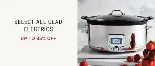 Don't miss out! Shop in store and get up to 35% off on select All-Clad electrics.