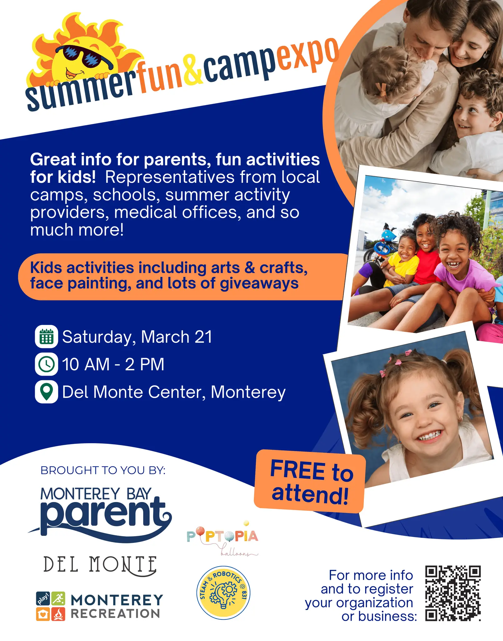 The Monterey Bay Parent Magazine Summer Fun and Camp Expo takes place on Saturday, March 21st from 10am-2pm at Del Monte Shopping Center!